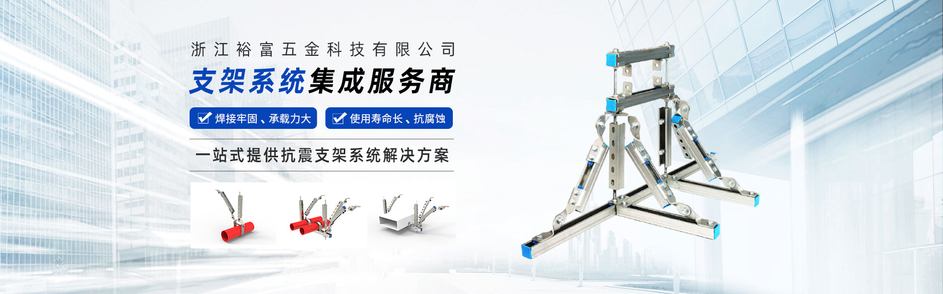 浙江裕富五金科技有限公司位于美麗的杭州臨安青山湖畔,注冊資金5000萬人民幣。是一家集研發(fā)、設計、制造、銷售、安裝、技術服務于一體的,專業從事抗震支吊架、管廊支吊架、綜合承重支吊架等,多功能、多元化的現代新興科技企業。 公司技術力量雄厚、設備齊全、工藝先進、管理體系高效完善,在注重產品設計、選材、結構工藝等細節(jié)基礎上,嚴格按照GB/T37267-2018、GB/T9978.1-2008等國家標準進行生產和管理,立足本土并扎根施工現場,多次調研測試并持續(xù)改進,產品通過了國家建筑工程質量監(jiān)督檢驗中心的檢測,打造了“裕富欣”品牌。